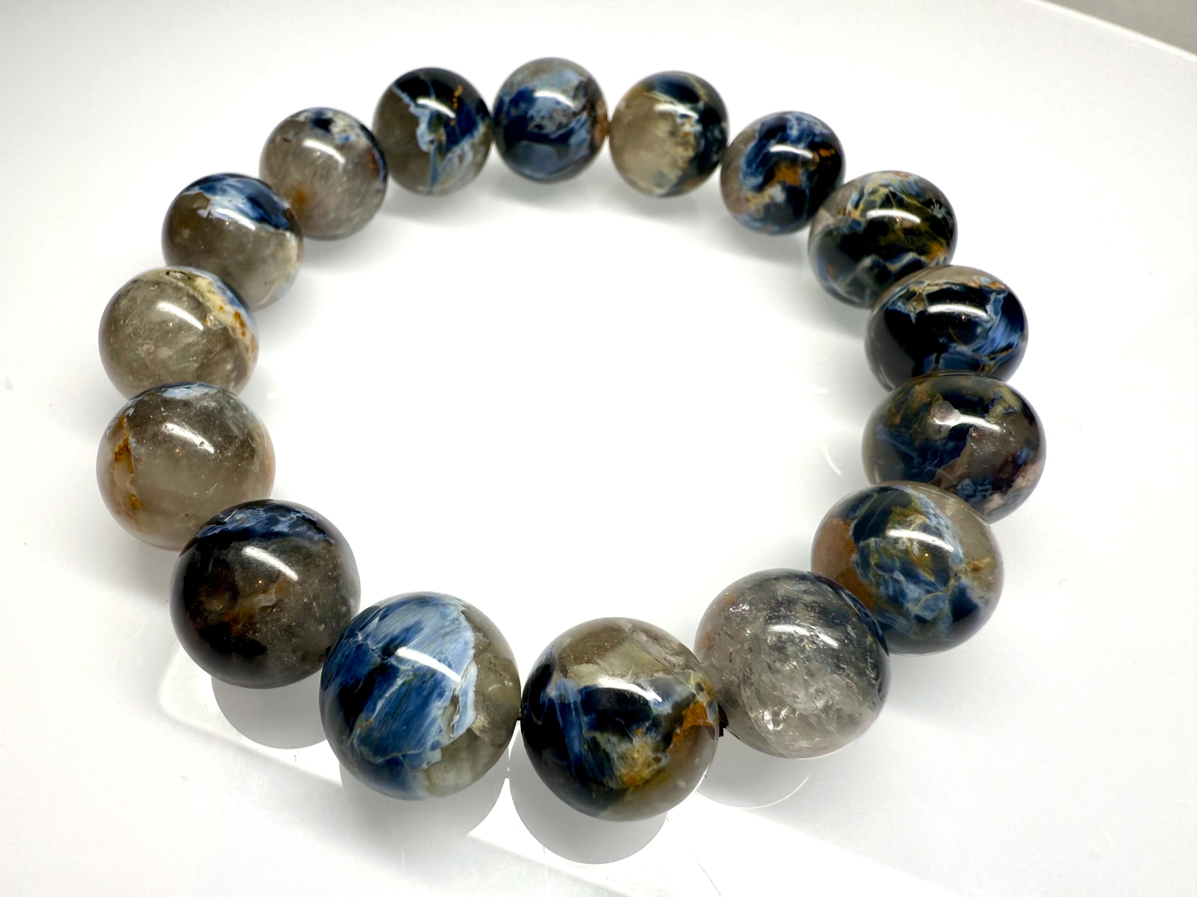 【特徴】ブルーピーターサイトシリカは、その美しい青色と独特の透明感が特徴で、多くの方々から特別な支持を受けているレアな石です。まるで澄んだ海の風景を思わせるこの宝石は、視覚的に楽しむだけでなく、持つ人に自信を与える不思議な力を秘めています。この石の持つ美しさは、どんなスタイルにも調和し、日常の装いを一層引き立てることでしょう。 ブルーピーターサイトシリカは、自然の中で非常に少なく、まさに特別な存在と言えます。その透明な質感は、陽光の光を受けることで一層輝きを増し、手に取るたびに新しい発見がある宝石です。この石は、自分自身とのつながりを深める手助けをし、心の中に静けさをもたらすとされています。 また、この石には心のバランスを整え、感情的な安定を促進する効果が期待できます。忙しい日常から解放され、自分の内面に目を向けるためのサポートをしてくれるかもしれません。アーティストやクリエイターの方には、特にインスピレーションを与えてくれる石としても人気です。 ブルーピーターサイトシリカのヒーリング効果